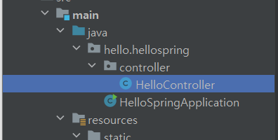컨트롤러 맨 아래쪽에, helloString 메소드를 생성하자.